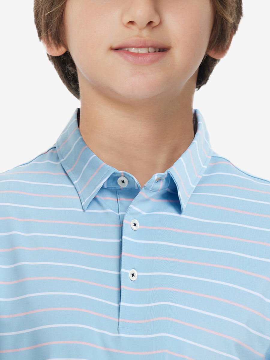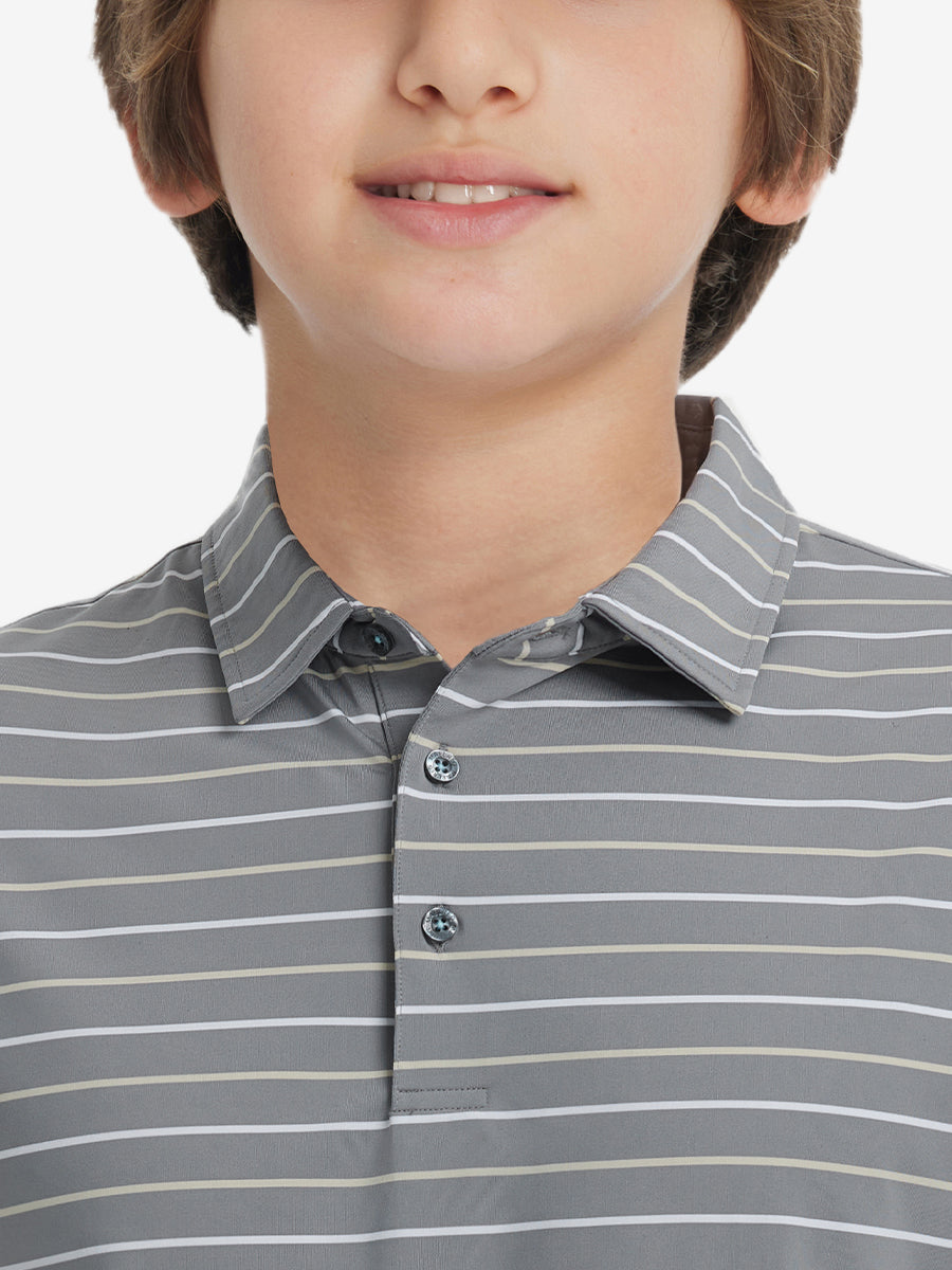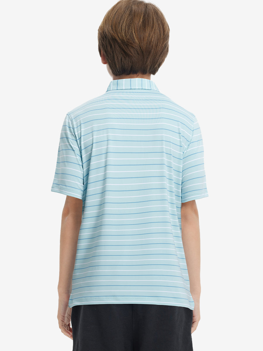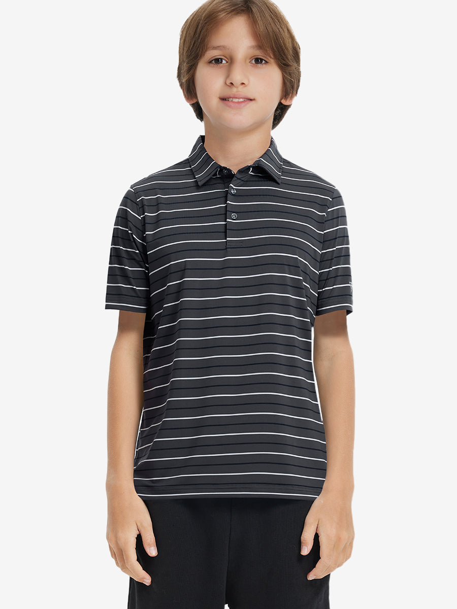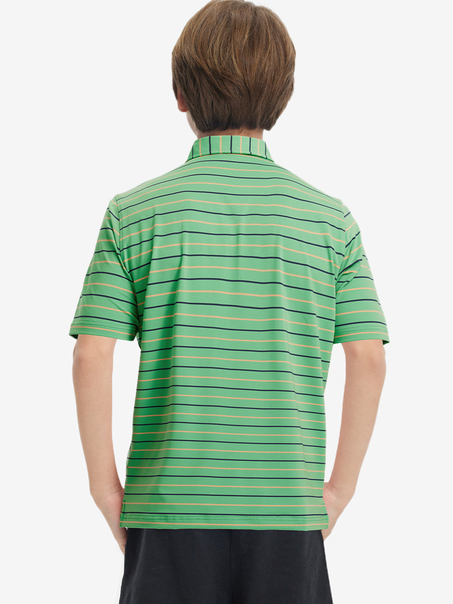 Introducing our Kids Stylish Stripe Polo Shirts! Made from high-end polyester spandex, these soft, skin-friendly, and lightweight shirts keep your little ones cool and dry in hot weather. With 4-way stretch fabric and premium dyeing, this vibrant youth golf shirt remains durable wash after wash, perfect for active kids who love to play.