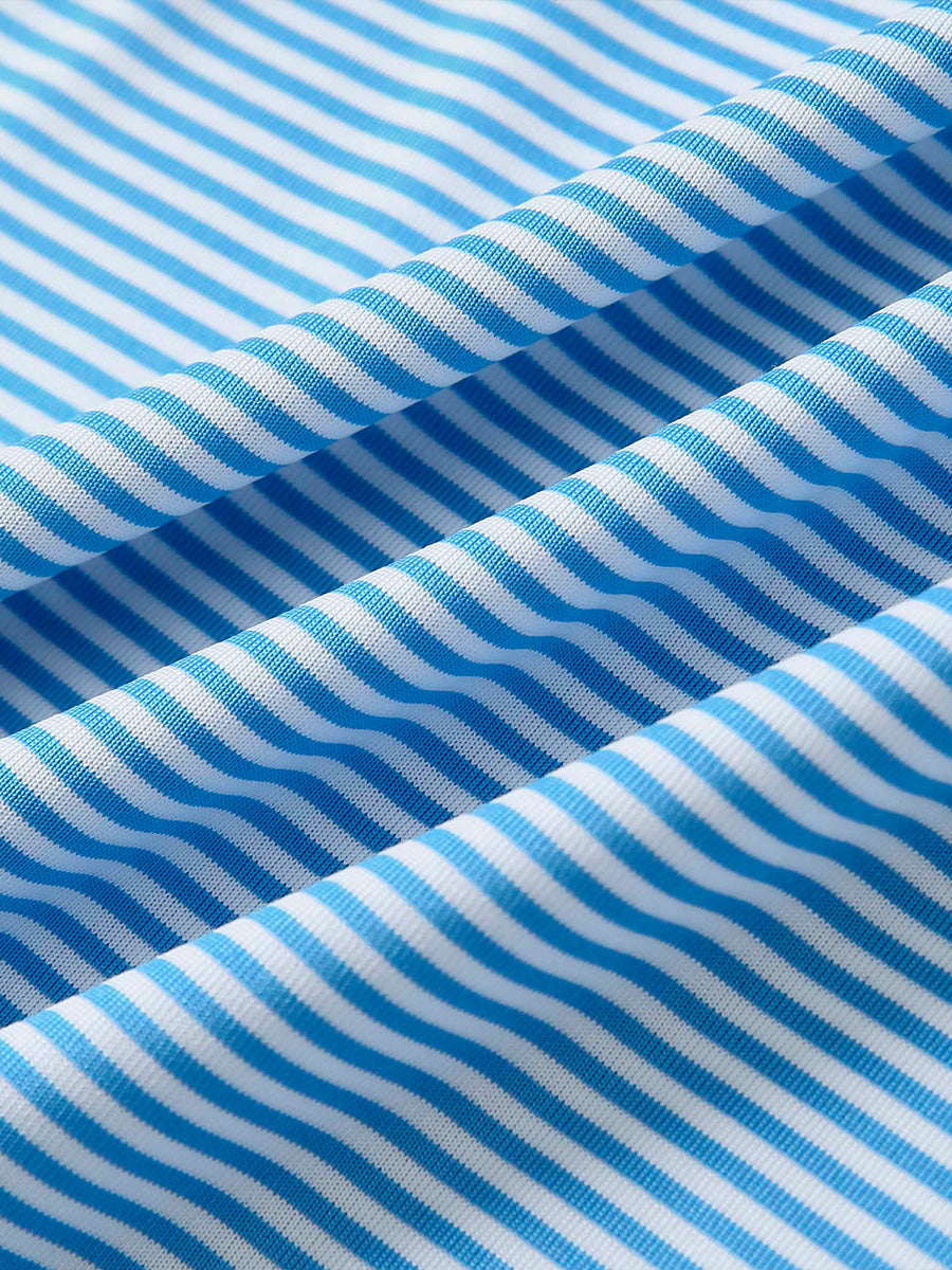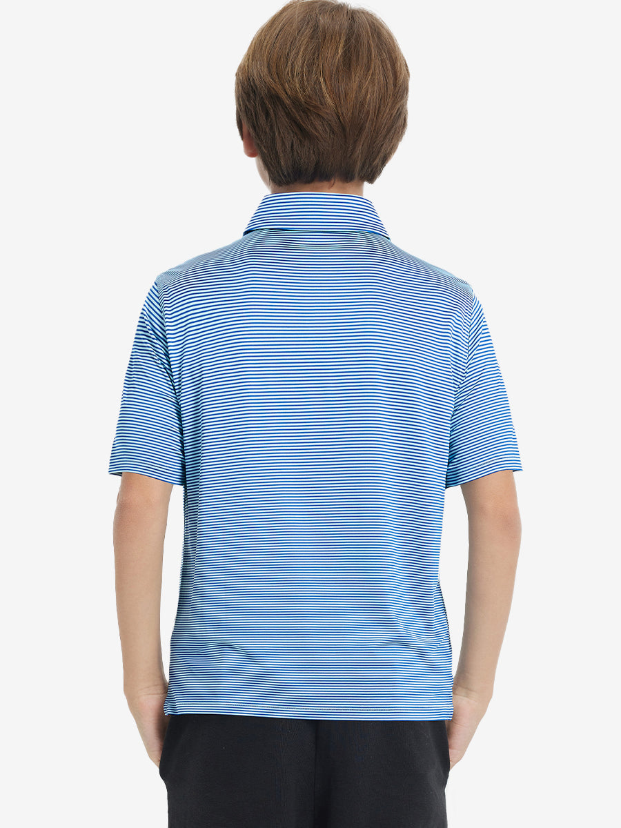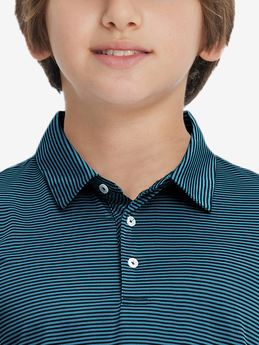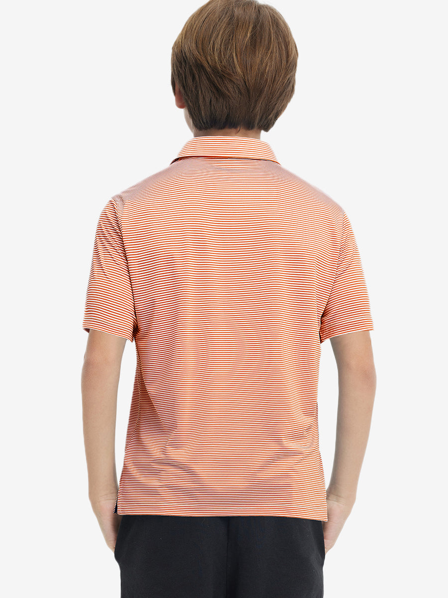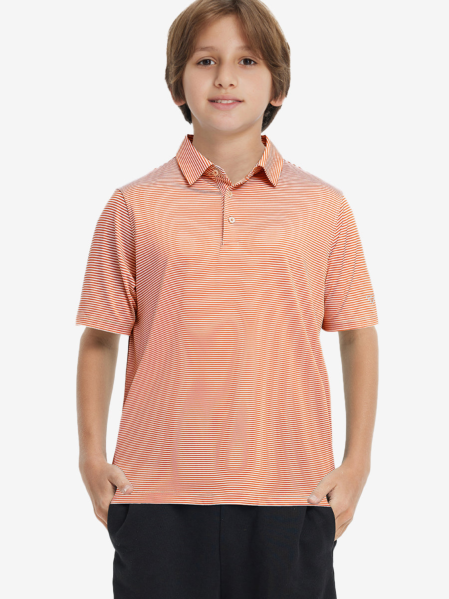 Performance Cooling Polo - Youth crafted from polyester spandex striped jersey. Lightweight, moisture-wicking, quick-drying, UPF 50+, soft hand-feel, 4-way stretch for comfort and breathability. Special construction ensures a no-curl collar and maintains shape.