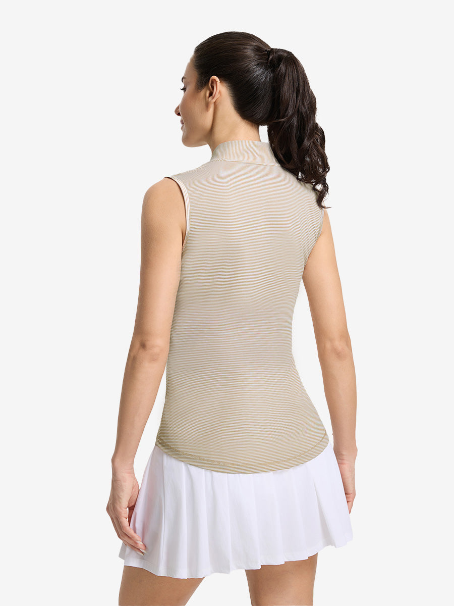 Play hard and stay cool in Women‘s Q-Zip Pin Striped Golf Shirts—lightweight, breathable pinstripe fabric wicks sweat and dries fast for summer-ready comfort. The sleeveless, collarless design with a convenient quarter-zip lets you adjust airflow on the go, while 4-way stretch ensures total freedom of movement on the golf course, tennis court, or pickleball match. With UPF 50+ sun protection and a flattering fit, it’s performance-ready and perfect for casual wear too!