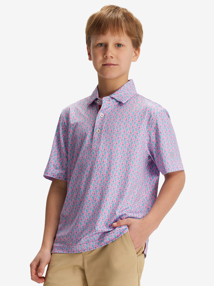 Youth Print Stretch Lightweight Polo Shirts